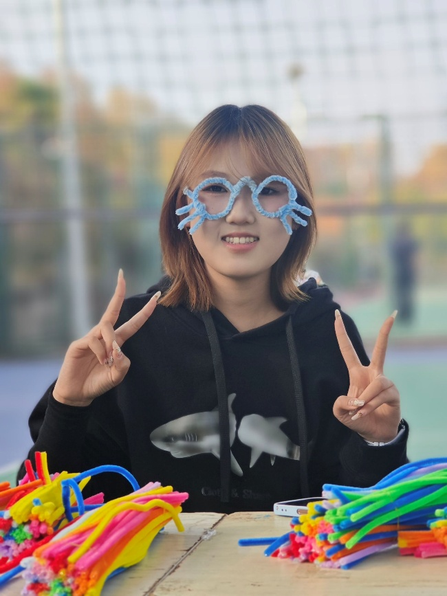 扭扭棒DIY环节充满欢乐。彩色扭扭棒在同学们指尖塑形,变成花朵、小动物等独特作品。大家交流技巧、分享创意,欢声笑语中驱散了学习疲惫。